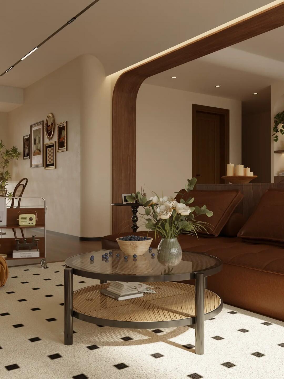 衍生至墻面,劃分空間布局的同時(shí)又打破了無(wú)主燈吊頂?shù)默F(xiàn)代感,再加上局部弧形造型點(diǎn)綴,復(fù)古格調(diào)感滿滿