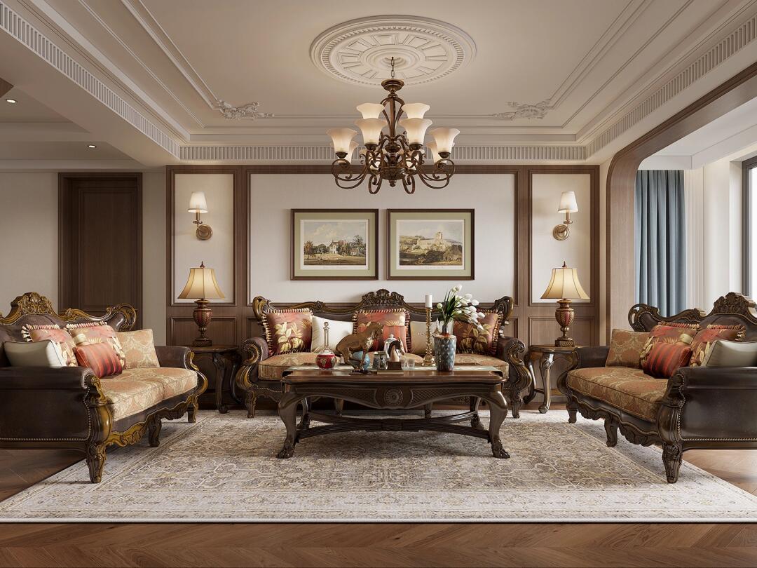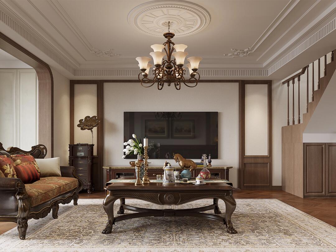 在空間及軟裝設(shè)計(jì)上遵循美式風(fēng)格文化的精髓空間主色調(diào)用棕紅打造一個(gè)奢華與細(xì)膩并存的家居空間。