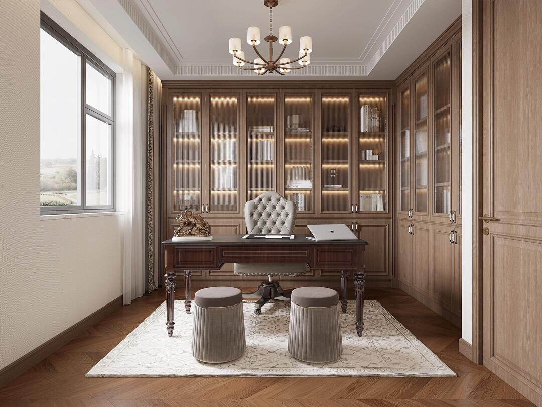 典雅大氣的書房空間糅合出別樣的韻味,如思想者般穩(wěn)重的理性之美滲透于細(xì)部,