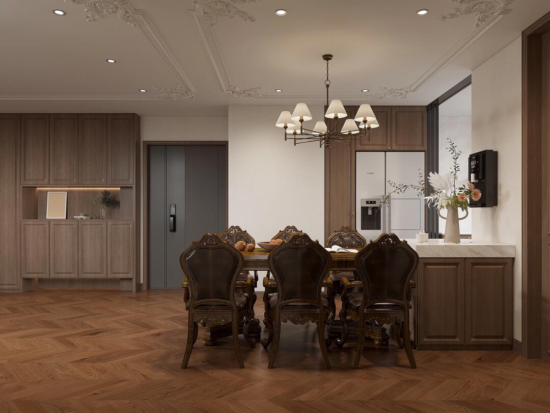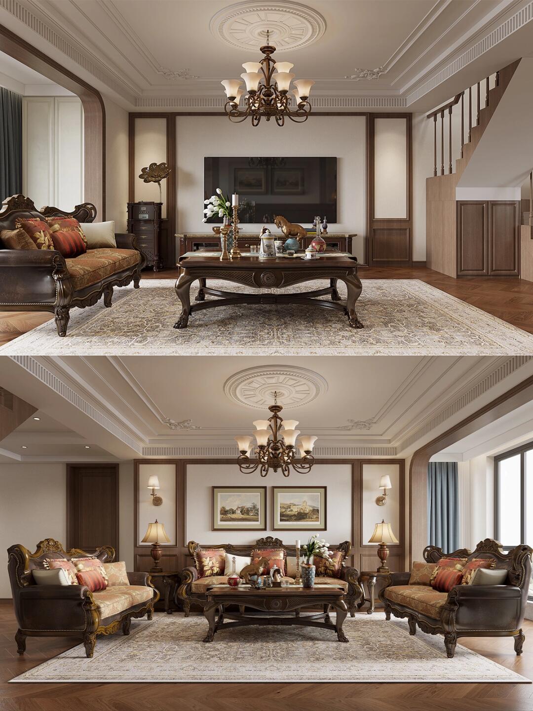 搭配了美式線條在空間中的描繪,并以深咖色作為基調(diào),營造出了溫和優(yōu)雅而樸實(shí)的空間氛圍。