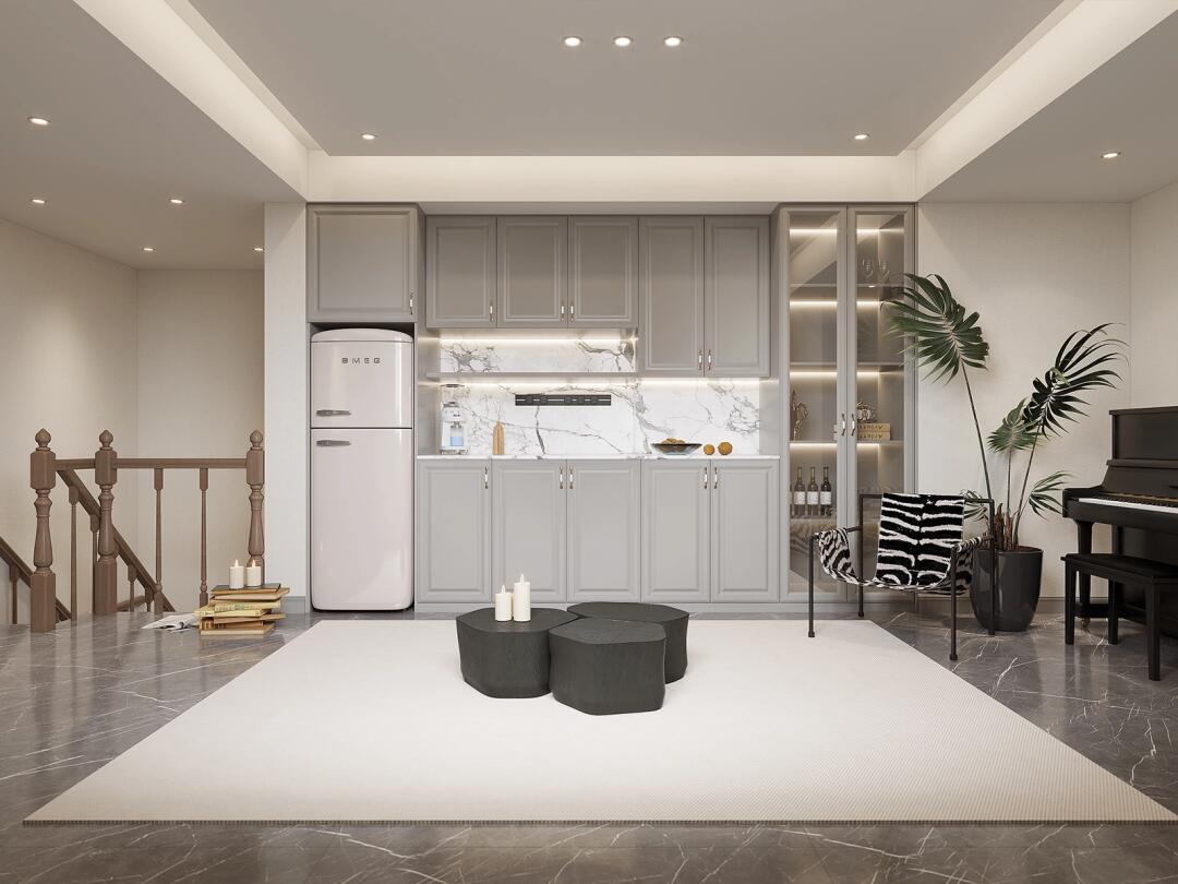 在淺灰色的空間中相互呼應(yīng),展示出空間的優(yōu)雅氣質(zhì)。