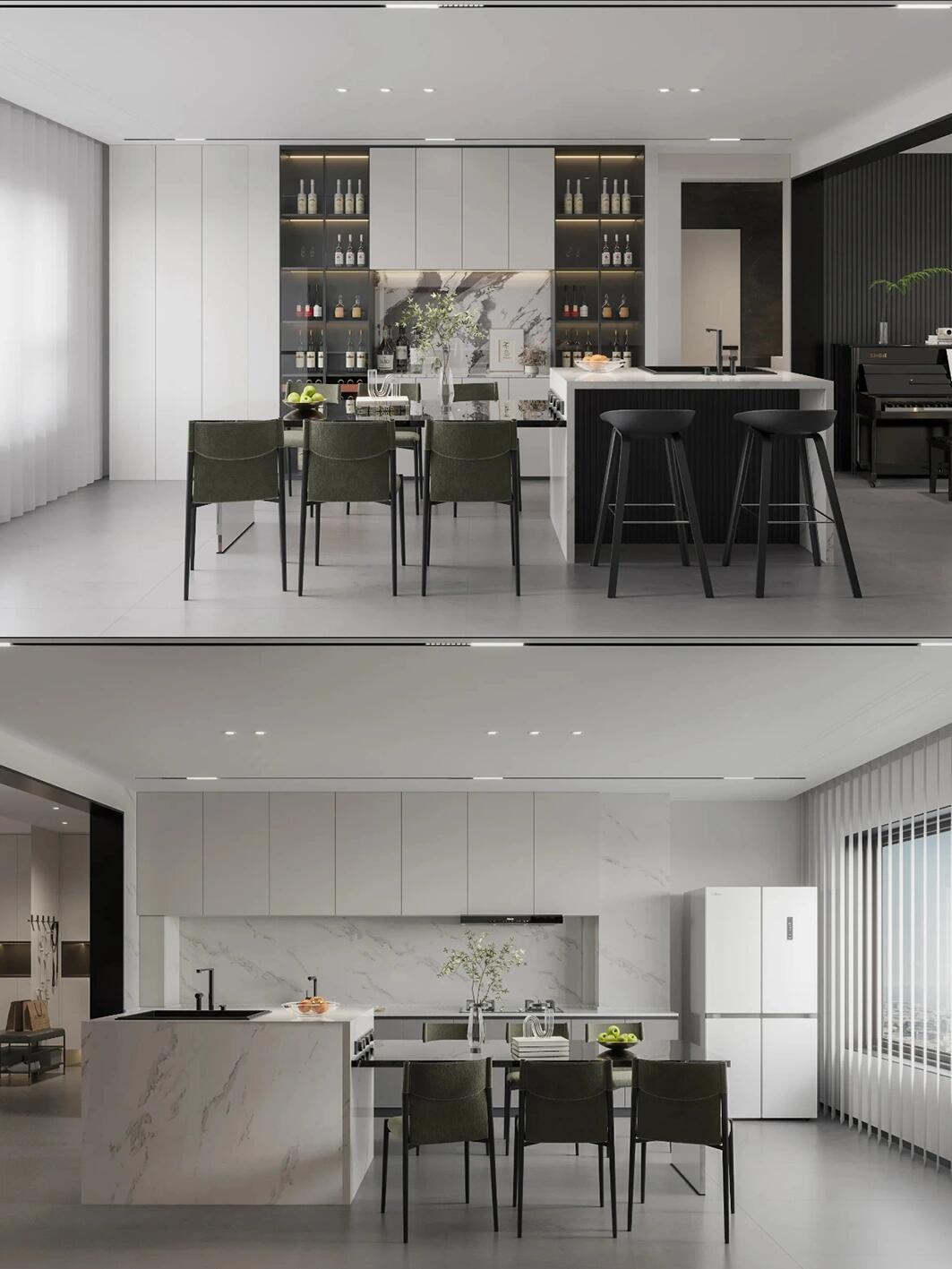 黑白基調作為主色調,瞬間帶來了視覺的沖擊力和層次感,讓你的空間變得非常現(xiàn)代又富有層次!