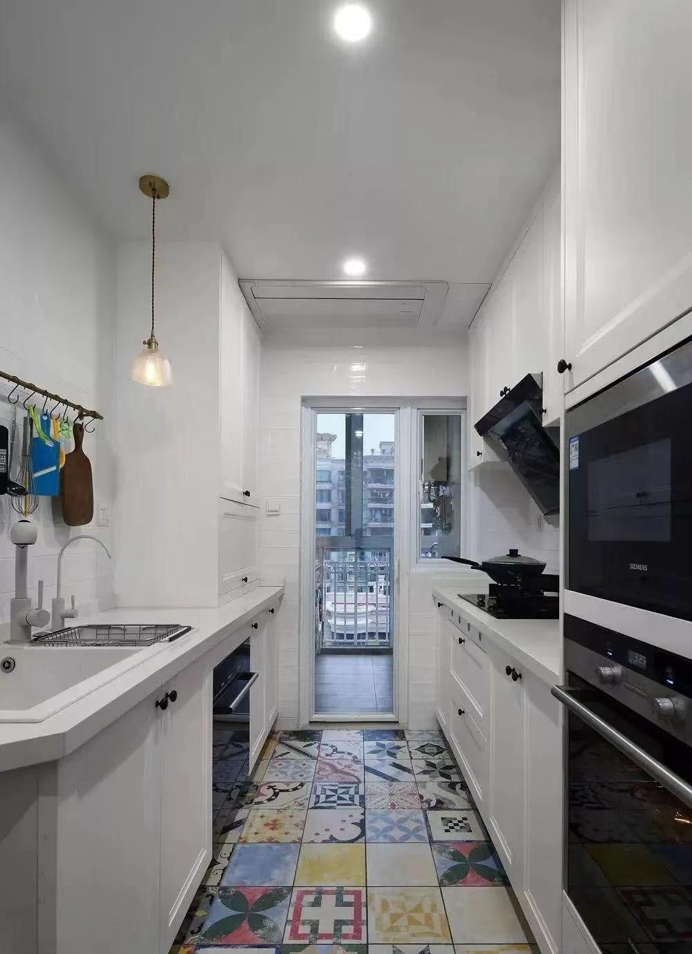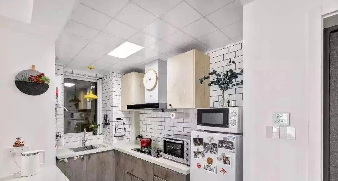 廚房如果只用一個主燈直射照明,難免會背光,影子遮擋造成視覺盲區,除了重點照明外,還可以選用銅燈、吊燈或者燈帶等進行局部照明。