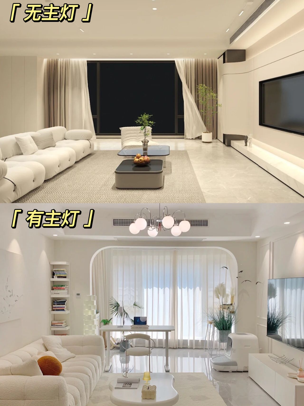 對(duì)于主燈的設(shè)計(jì),其實(shí)就是一個(gè)非常兩極化的審美,這張圖可能有意無意的在試圖“丑化”有主燈,實(shí)際上只要燈光瓦數(shù)到了,根本沒有這么暗。
