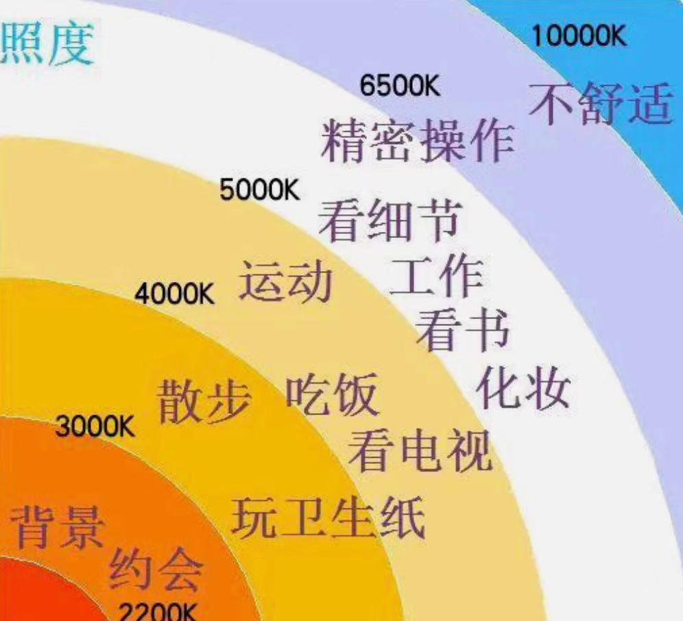 其次,照明必須滿足人的心理需求,如色溫、照度對(duì)人情緒的影響。